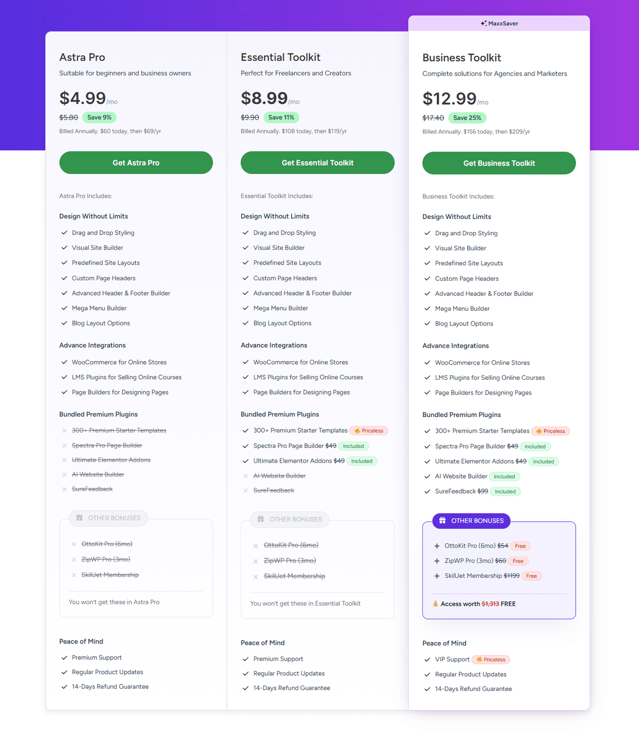 The free version of Astra is surprisingly generous. It’s more than enough for blogs, portfolios, or simple business sites.